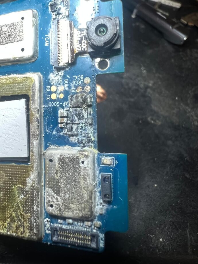- Conectorii și traseele fine de pe PCB erau afectați de oxidare avansată.