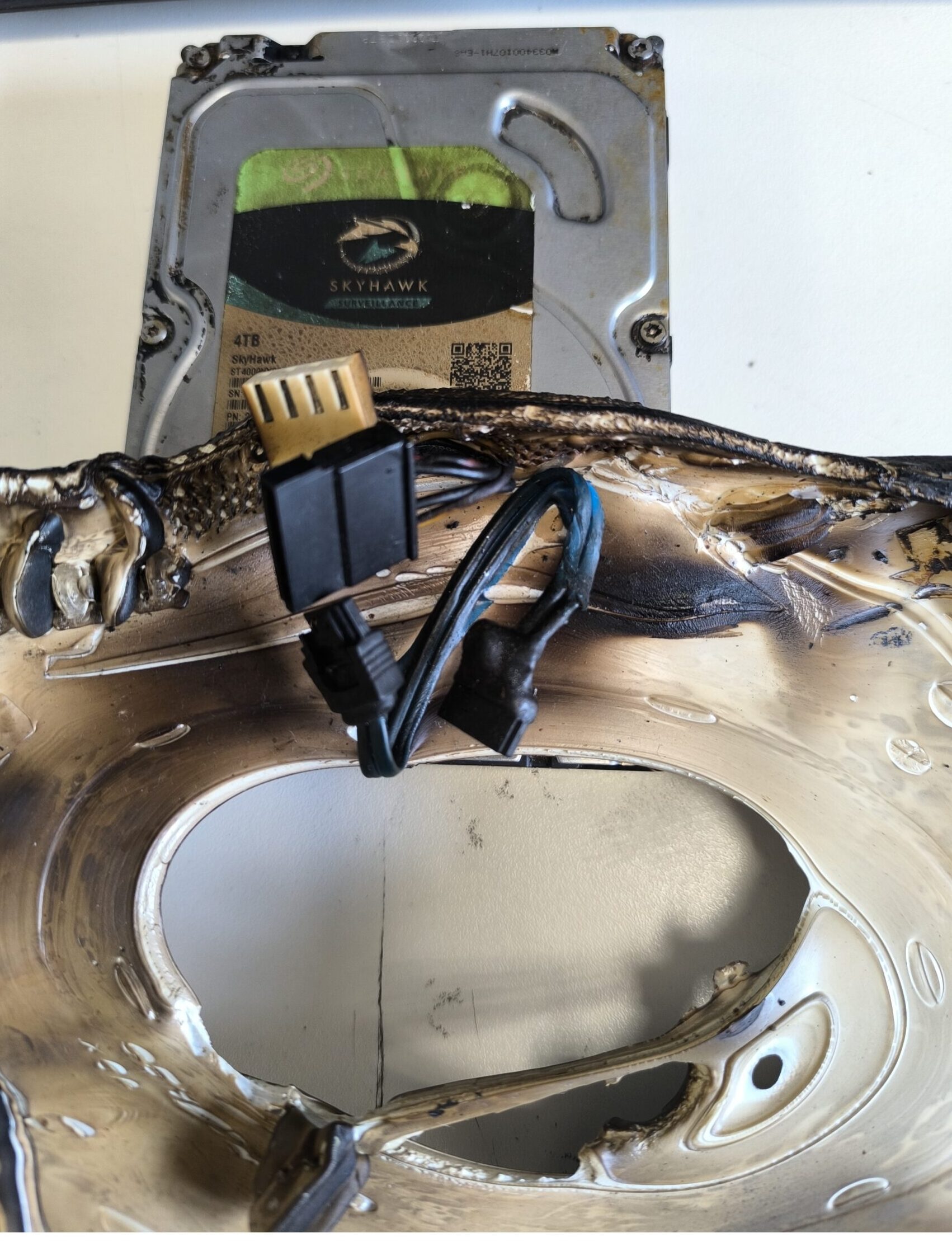 Recent, am fost contactați de proprietarul unui magazin alimentar care a suferit un incendiu devastator. În urma incidentului, magazinul a ars complet, iar sistemul de supraveghere – inclusiv DVR-ul care stoca imaginile video – a fost grav afectat de flăcări și temperaturi extreme.